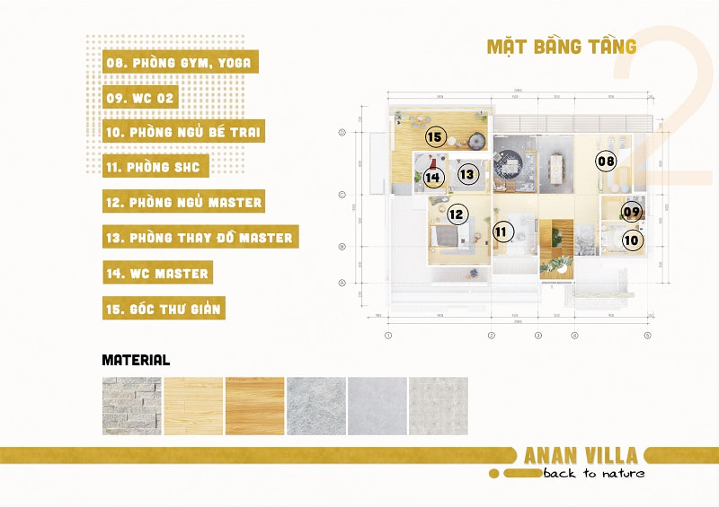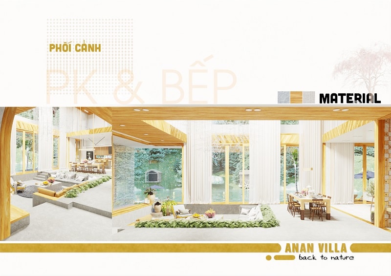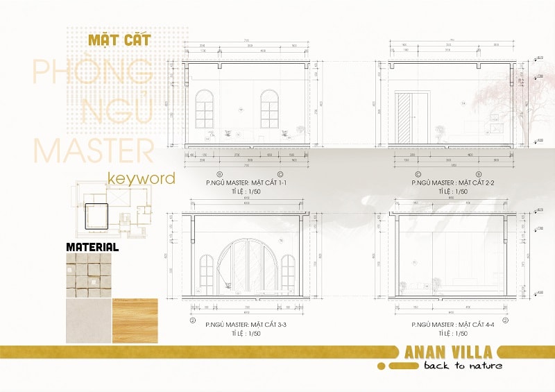 • Thể hiện ý tưởng thiết kế: Mặt bằng tổng thể có sân vườn; Mặt bằng tổ chức không gian các tầng; Mặt đứng