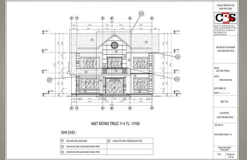 • Thể hiện ý tưởng thiết kế: Mặt bằng tổng thể có sân vườn; Mặt bằng tổ chức không gian các tầng; Mặt đứng